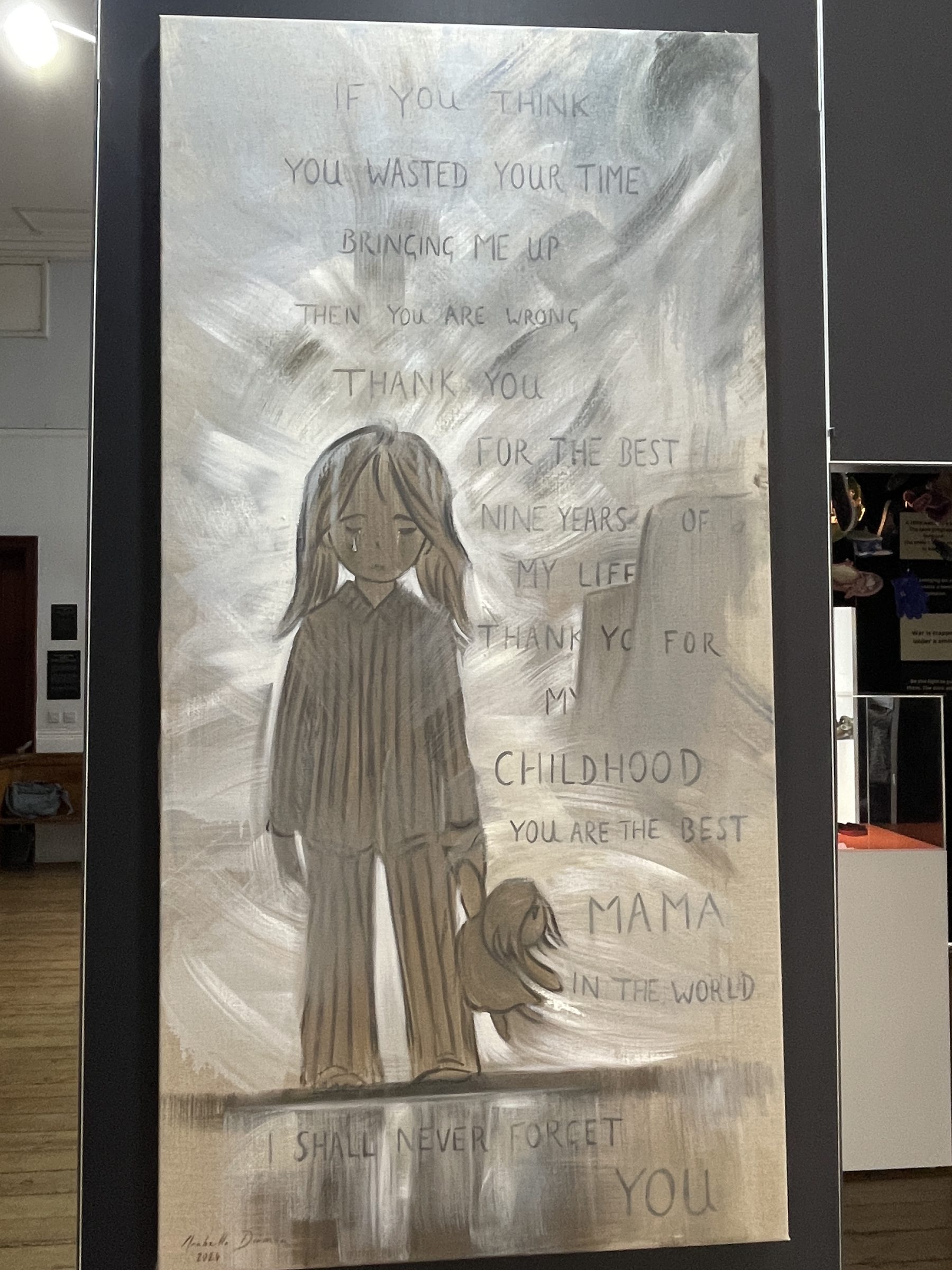 Her powerful images, together with children’s paintings and the artifacts of war that make up the exhibition, present a grim picture of the suffering of children caught up in conflicts in Ukraine, Gaza, the Middle East and elsewhere: “In modern conflict children stand on the frontline … but it is not just about the trauma children suffer in war but also about the long term effects of that violence”, said Dorman.